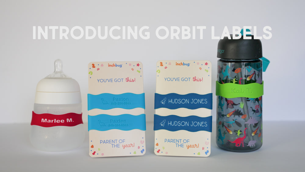 Our Orbit Labels feature durable silicone engraving that sits snugly on different sized bottles and stays put through the dishwasher, wash after wash. TagPals are just as easy! Simply peel, stick onto your little one's clothing tag, and they'll survive every spin cycle without budging.
